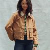 A reimagining of a timeless classic, The Flight Jacket draws inspiration from the utilitarian outerwear worn by WWI pilots in the early 1900s. Designed with intention and a sense of story, this jacket balances heritage details with a modern, lived-in feel. Crafted in a softly structured silhouette, it features a slouchy fit with dropped shoulders and a boxy shape that layers effortlessly. Patch pockets with metal snaps offer function with a hint of rugged charm, while a wide collar, front zip closure, and snug ribbed cuffs and waistband nod to its vintage roots. Inside, a peach satin lining adds a playful contrast—like the unexpected pop of a cherished heirloom passed down with love. Wear it over feminine dresses or your favorite worn-in jeans—it’s made to be styled your way.