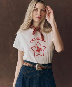 THE GREAT. Women’s Collection The Boxy Crew. Graphic | Washed White With Rodeo Star Graphic