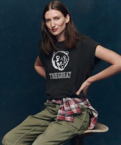 THE GREAT. Women’s Collection The College Sweatshirt. Graphic | Washed Black With Bear Graphic
