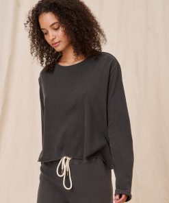 Women’s Tees & Sweats The Long Sleeve Crop Tee. – Washed Black – The Great. | Washed Black