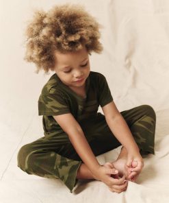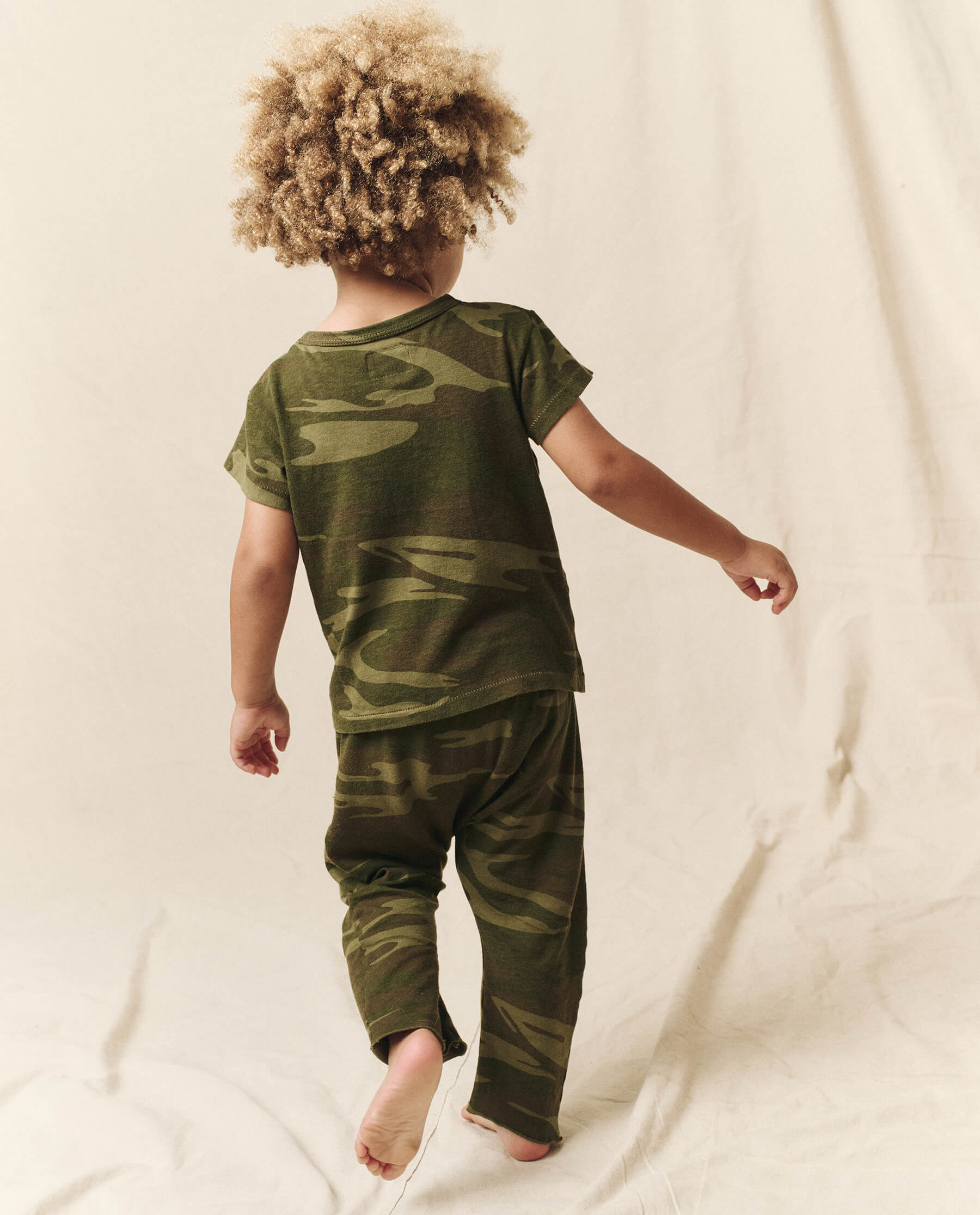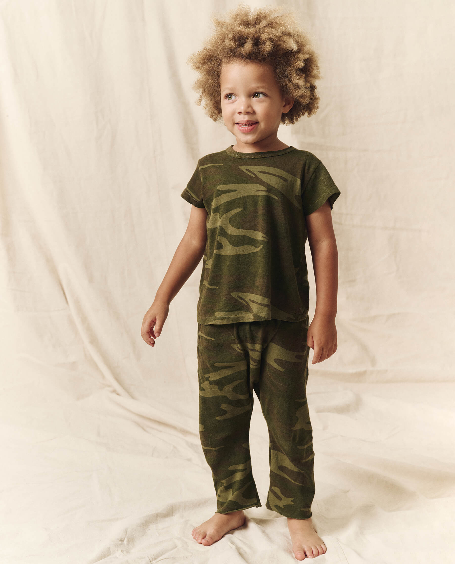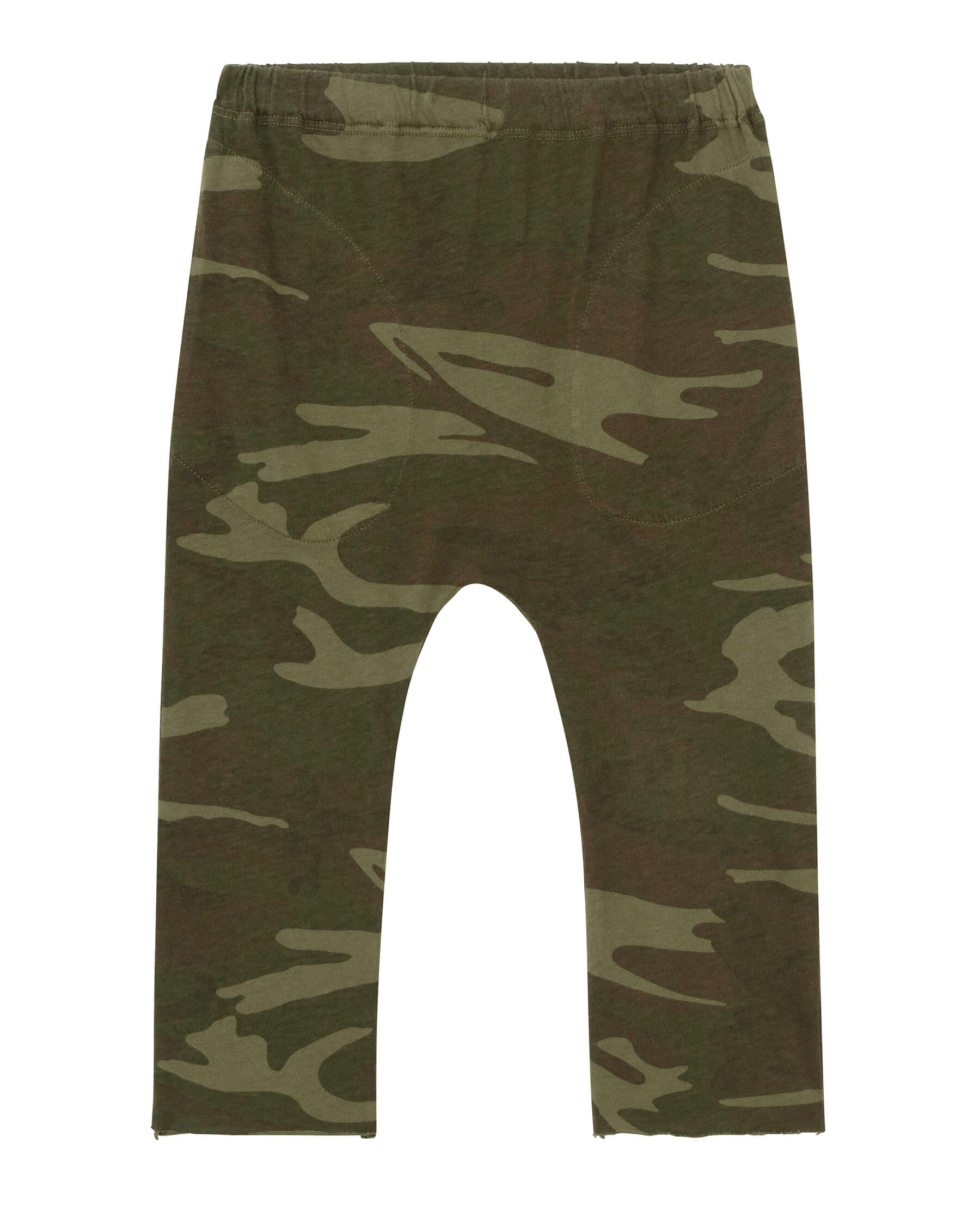 A little version of our beloved Jersey Crop. Now offered in a new authentic camo print, perfect for when you’re in the mood to play with prints. This elastic waist jersey pant has our signature dropped rise and straight leg with a wider silhouette. Hand crafted locally in L.A., our process ensures beauty and uniqueness—so that no two pieces are alike.