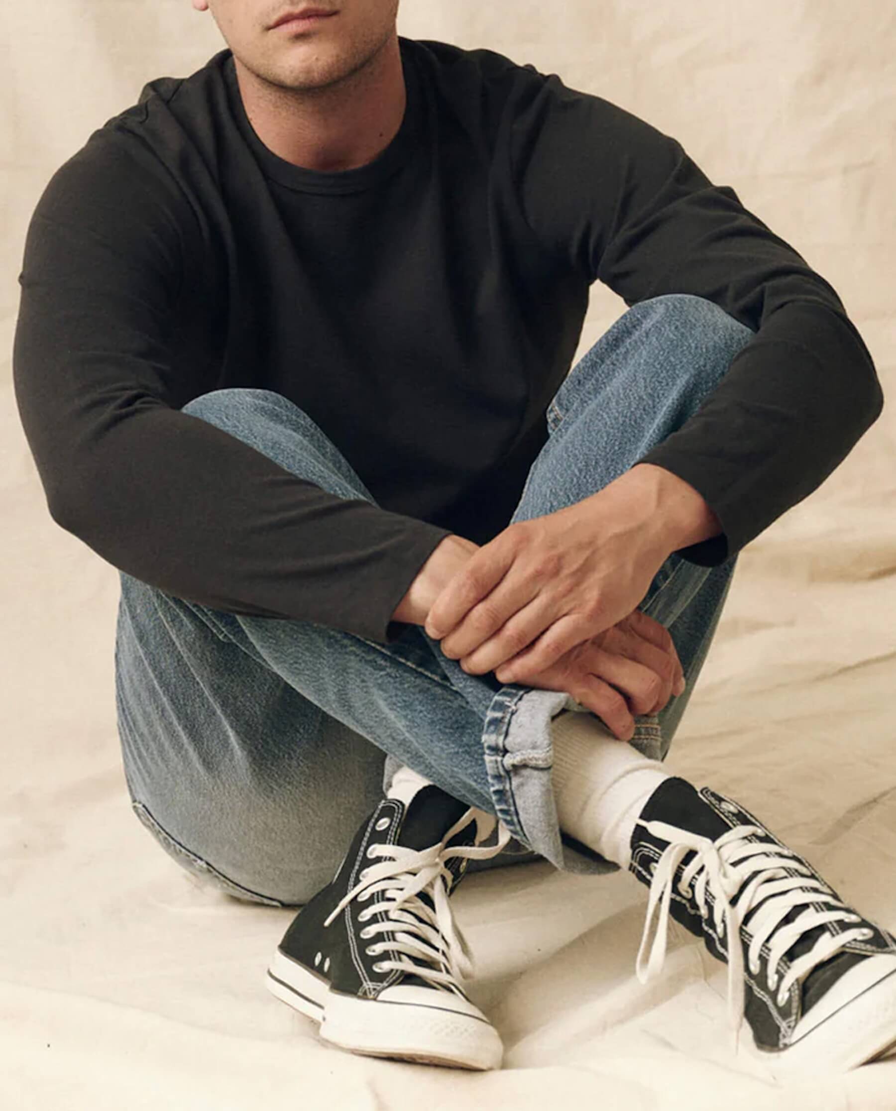 The Long Sleeve Crew. is a classic crew neck silhouette crafted in our new heavy-weight fabric that is super soft and washed to perfection. Designed with a boxy shape, this tee is tailored to provide a slimmer fit, still with the ease you’ve known to love.