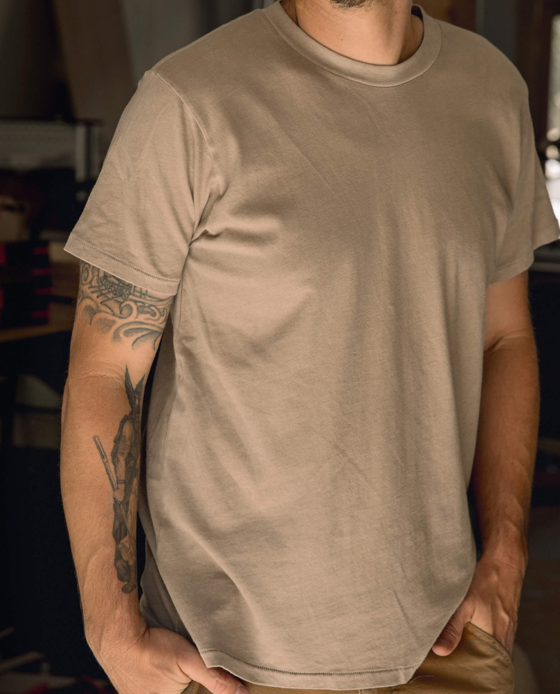 Inspired by a washed and worn vintage t-shirt that fits just right, The Men’s Slim Tee. is slightly more fitted and slimmer than The Men’s Boxy Crew., with the same amount of ease and comfort. Garment dyed and made in the USA, this tee develops (even) more character with every wear.