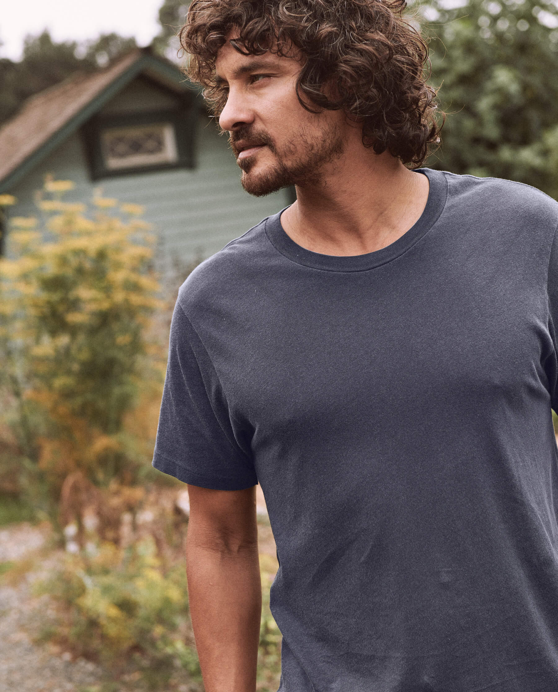 Inspired by a washed and worn vintage t-shirt that fits just right – The Men’s Slim Tee. is slightly more fitted and slim than The Men’s Boxy Crew., but with the same amount of ease and comfort. Garment dyed and made in the USA, this tee builds more character with each wear.
