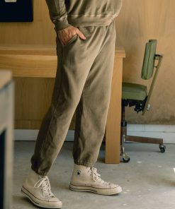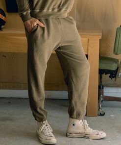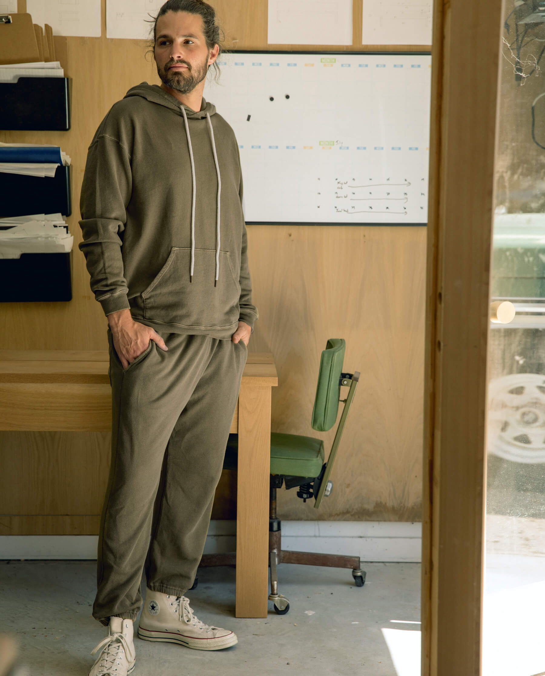 Inspired by vintage athleticwear, The Stadium Sweatpant. is a classic men’s bottom. Made of softly washed cotton, it features an elasticated waist with a hidden drawstring, elastic ankle cuffs, pockets on the side seam, and a patch pocket in back. Crafted locally here in Los Angeles, our process ensures the authenticity and uniqueness of every piece that will develop (even) more character with wear.