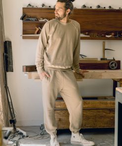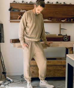 Inspired by vintage athleticwear, The Stadium Sweatpant. is a classic men’s bottom. Made of softly washed cotton, it features an elasticated waist with a hidden drawstring, elastic ankle cuffs, pockets on the side seam, and a patch pocket in back. Crafted locally here in Los Angeles, our process ensures the authenticity and uniqueness of every piece that will develop (even) more character with wear.