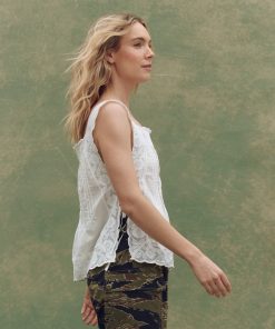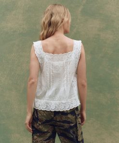 Inspired by cherished Victorian garments, The Attic Lace Cami feels like a piece you might uncover in an old chest — delicate, airy, and made for warm days. Crafted from soft cotton slub with fine embroidered detailing, it features a square neckline and is edged with wide, scalloped cotton lace. The open sides are finished with delicate cotton twill ties, allowing for an adjustable, custom fit. Light and breezy — the perfect summer throw- wear back to denim and sneakers.