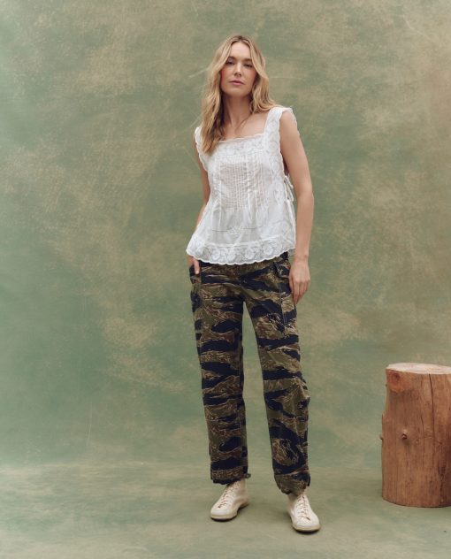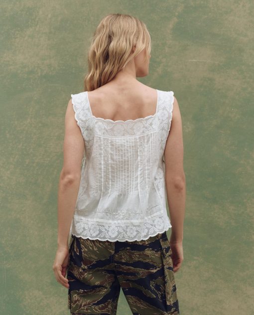 Inspired by cherished Victorian garments, The Attic Lace Cami feels like a piece you might uncover in an old chest — delicate, airy, and made for warm days. Crafted from soft cotton slub with fine embroidered detailing, it features a square neckline and is edged with wide, scalloped cotton lace. The open sides are finished with delicate cotton twill ties, allowing for an adjustable, custom fit. Light and breezy — the perfect summer throw- wear back to denim and sneakers.