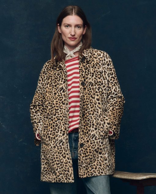 Inspired by a midcentury lady’s coat, The Car Coat is made from a faithful reproduction of a crushed faux fur leopard print with a quilted satin lining interior. With dropped shoulders, angled armholes, cropped sleeves, tailored collar, welt pockets, and sophisticated horn buttons up the front.