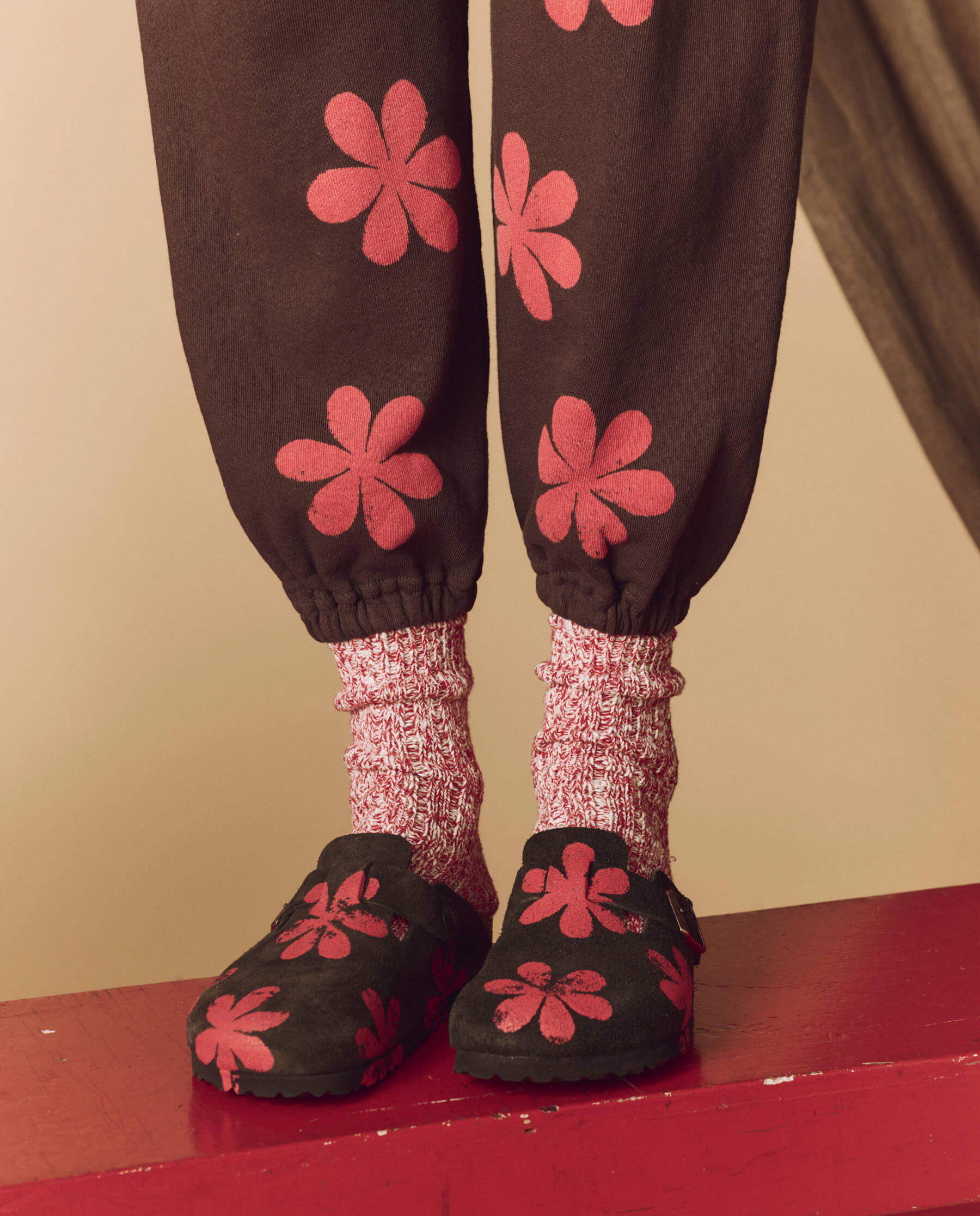 THE GREAT. Women’s Collection The Hand Stamped Birkenstock Boston. | Mocha With Hot Red Daisy