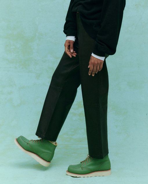 The Wayne Jean. is our favorite slouchy body updated for the festive season in soft leather. Inspired by—and named for—Emily’s late father. This is a cherished fit that gets better with age…just like its namesake. This pant fits easy through the leg andis cropped to the perfect length. Wear The Leather Wayne. true to size at the natural waist or size up to wear them oversized and slung low, like borrowing his favorite pair.