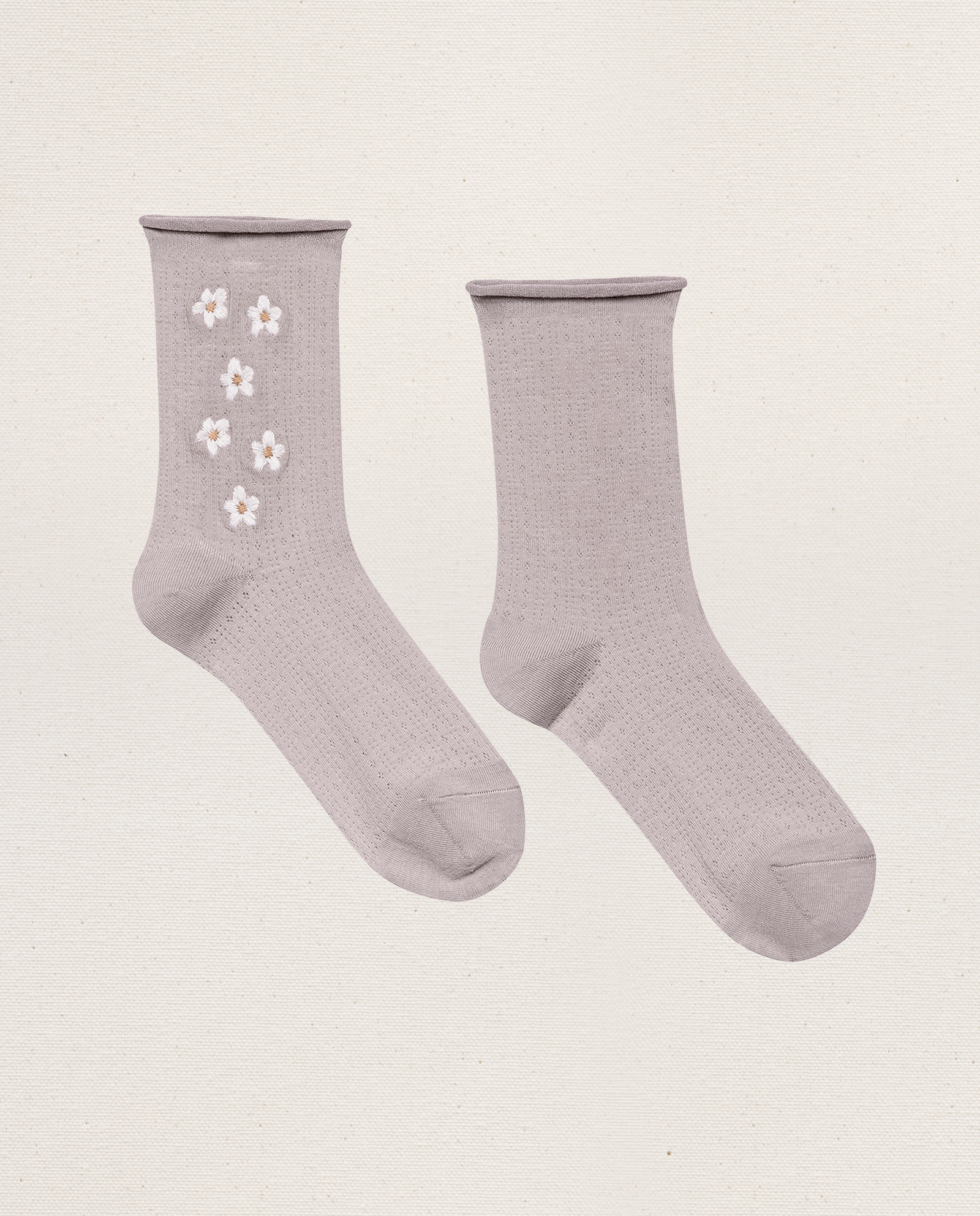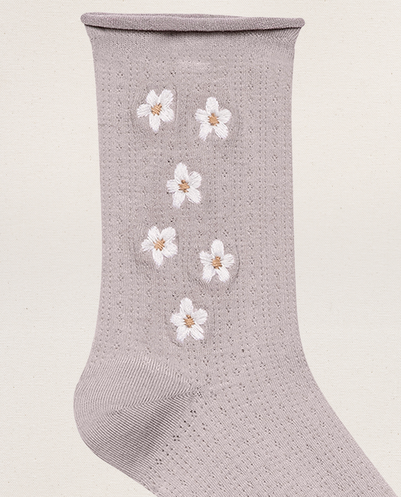 THE GREAT. Women’s Collection The Pointelle Sock. | Lavender With Daisy Embroidery