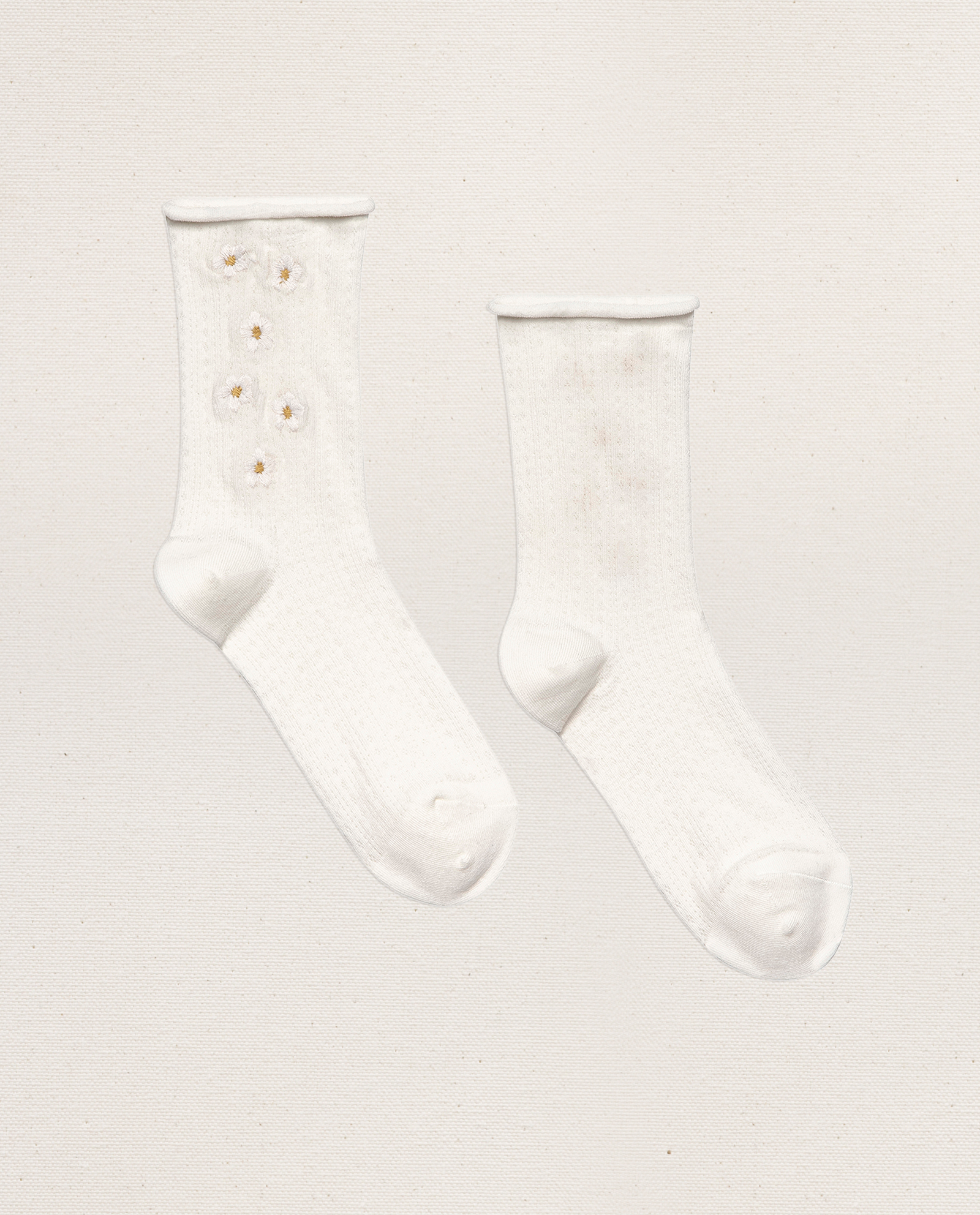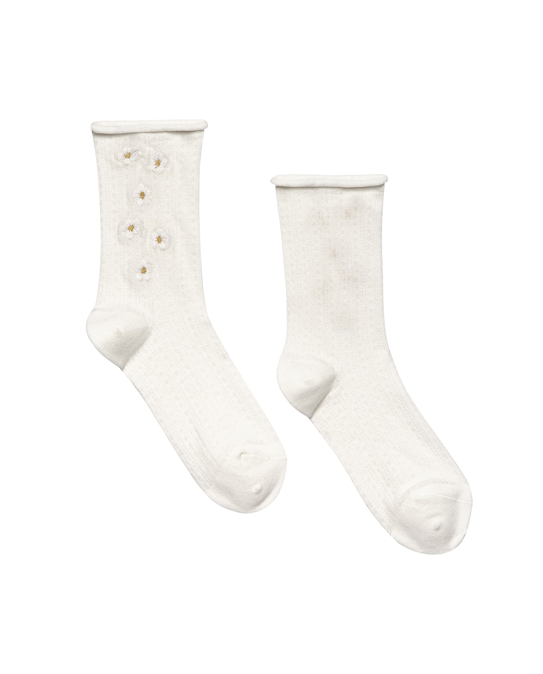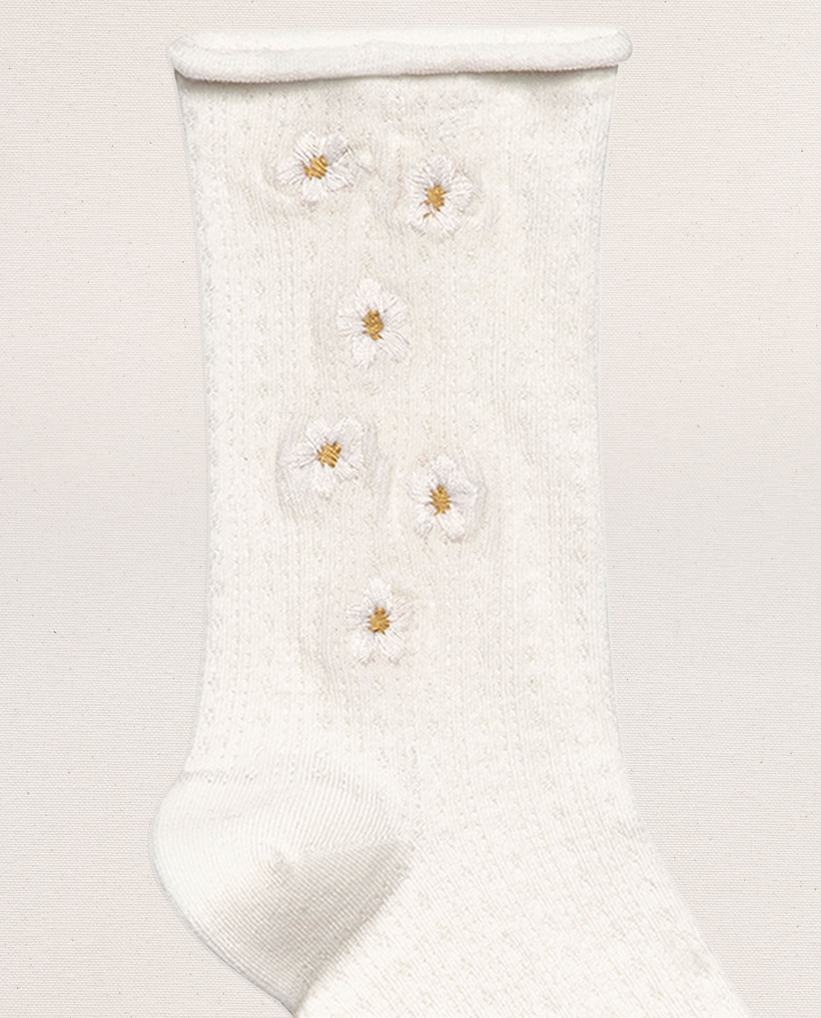 THE GREAT. Women’s Collection The Pointelle Sock. | True White With Daisy Embroidery