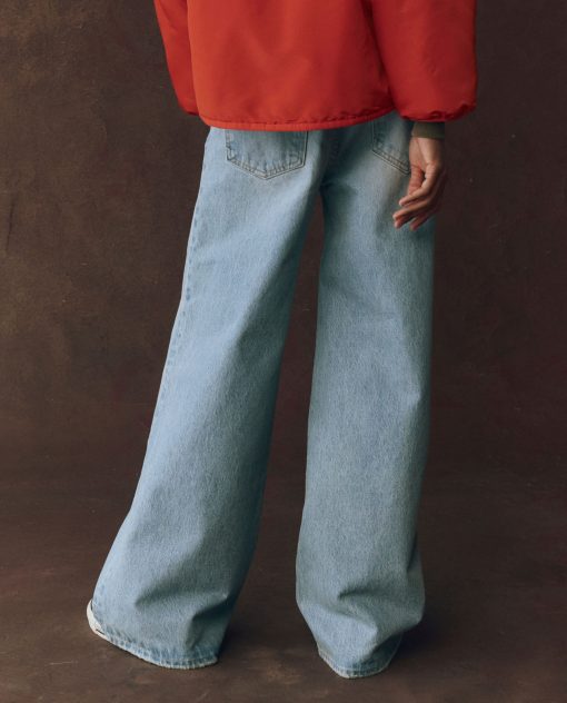 The Slouch Wide Leg Jean sits low on the hips with a long inseam and a wide, easy leg. Classic five-pocket construction includes scoop pockets, back