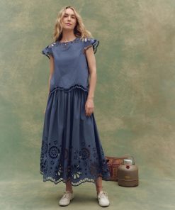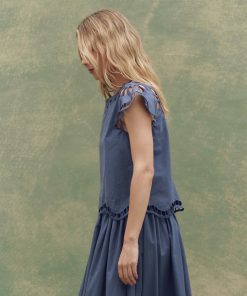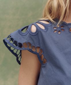 THE GREAT. Women’s Collection The Super Bloom Eyelet Top. | Vintage Blue
