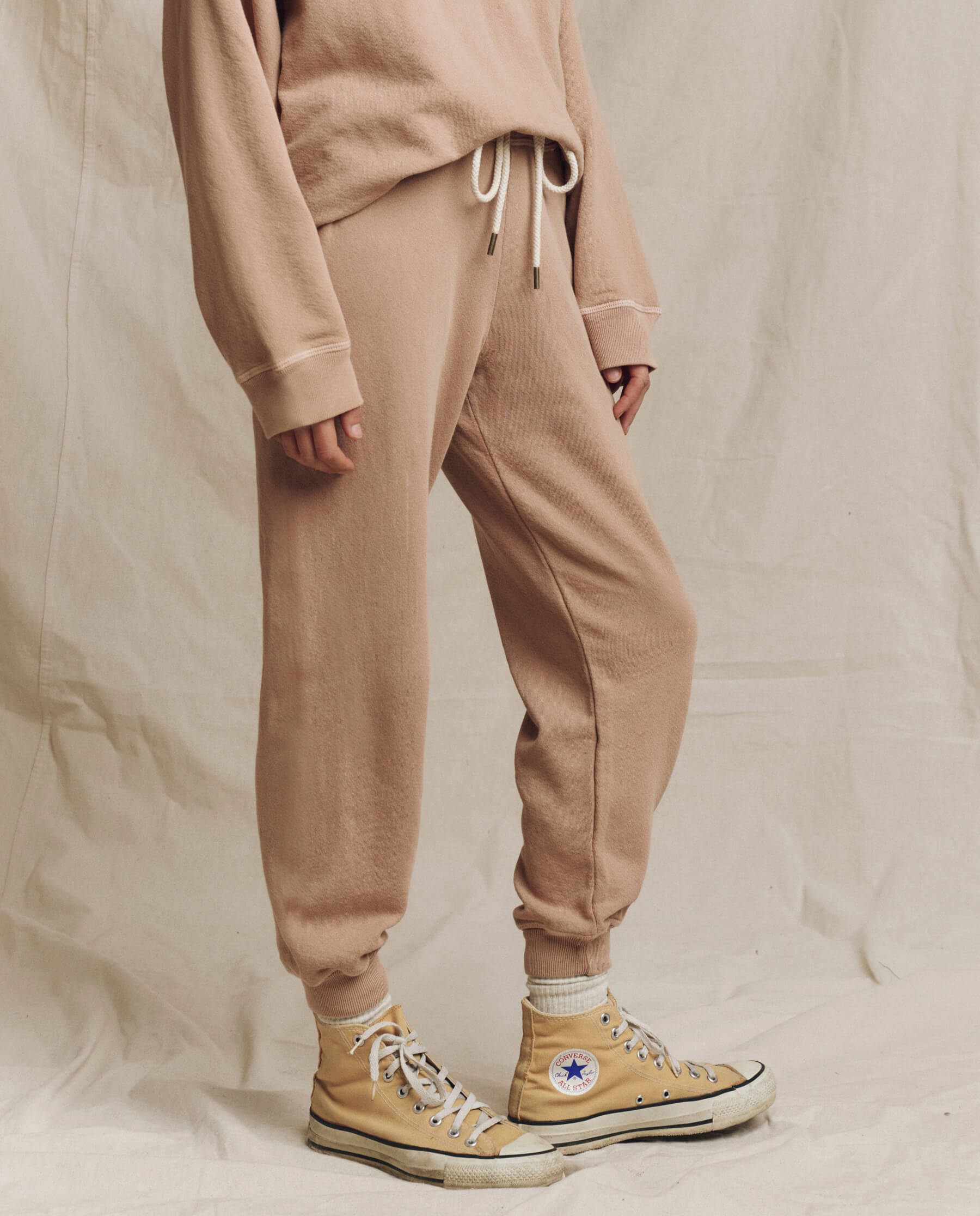 This worn-in sweatpant is the perfected version of a vintage gym pant. Its drawstring waistband and ribbed cuffs make for a perfectly relaxed look. Our knits are crafted here in Los Angeles, ensuring authenticity, beauty and uniqueness in that no two pieces are alike.