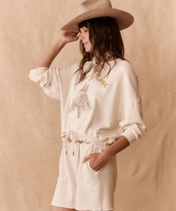 This sweat short is meant to be worn slouchy. It features both an elastic waistband and an interior cotton drawstring with brass tips, so it can be worn either slung low on the hips or high at the waist. The lightly frayed raw hem is cut long on the leg, and it features forever practical patch pockets. Our knits are crafted here in Los Angeles, ensuring authenticity, beauty and uniqueness in that no two pieces are alike.