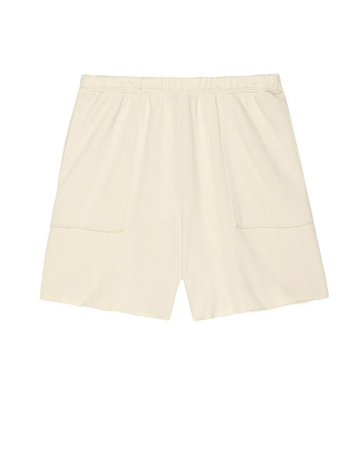 This sweat short is meant to be worn slouchy. It features both an elastic waistband and an interior cotton drawstring with brass tips, so it can be worn either slung low on the hips or high at the waist. The lightly frayed raw hem is cut long on the leg, and it features forever practical patch pockets. Our knits are crafted here in Los Angeles, ensuring authenticity, beauty and uniqueness in that no two pieces are alike.