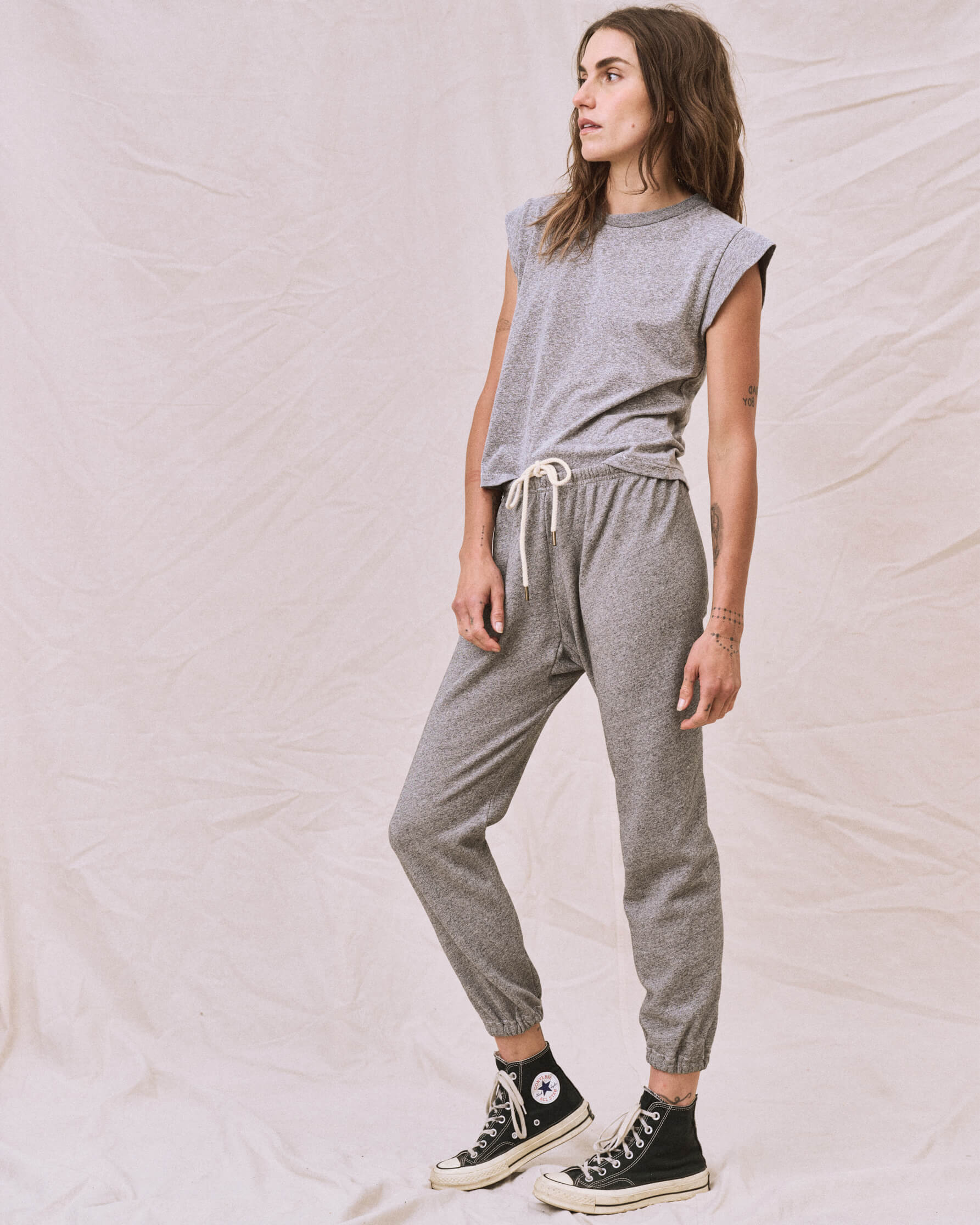 The Peak Shoulder Tee is an essential of core collectibles—a reimagining of the classic crewneck fit with updated proportions and shortened pitched sleeves. Cut to flatter, we especially love this new tee tucked into high-waisted denim and billowing skirts so the sleeves still steal the show. Handcrafted locally in Los Angeles, our process ensures beauty and uniqueness—no two pieces are alike.