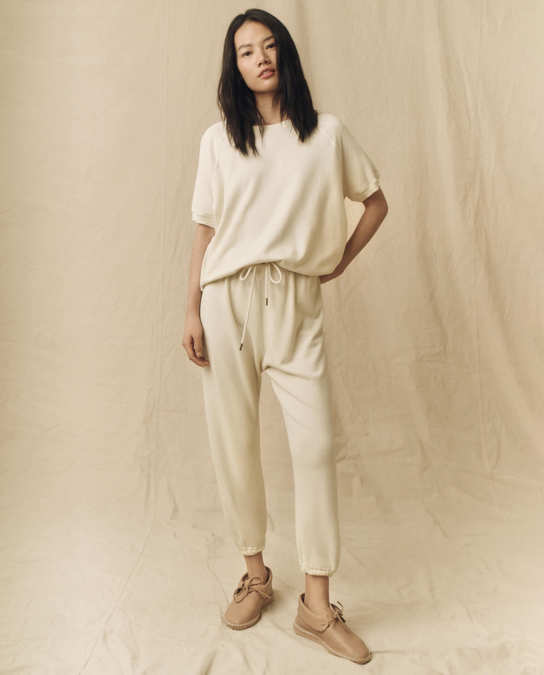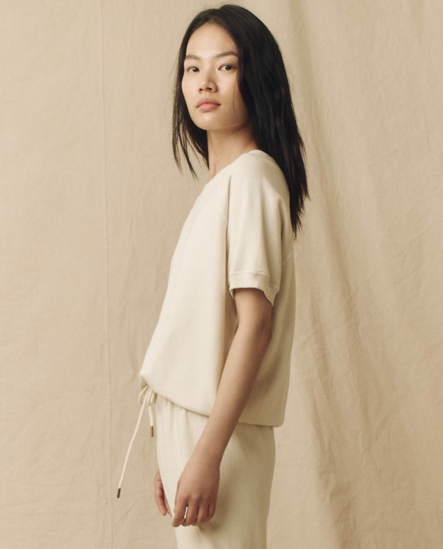 The Short Sleeve Sweatshirt. is a perfect transitional piece into warmer weather. Designed with a slouchy and easy fit with cropped short sleeves, a classic crew neck, raglan sleeves, and rib finishings that pairs easily with shorts, sweats, or your favorite jeans.Handcrafted locally in Los Angeles, our process ensures beauty and uniqueness—no two pieces are alike.