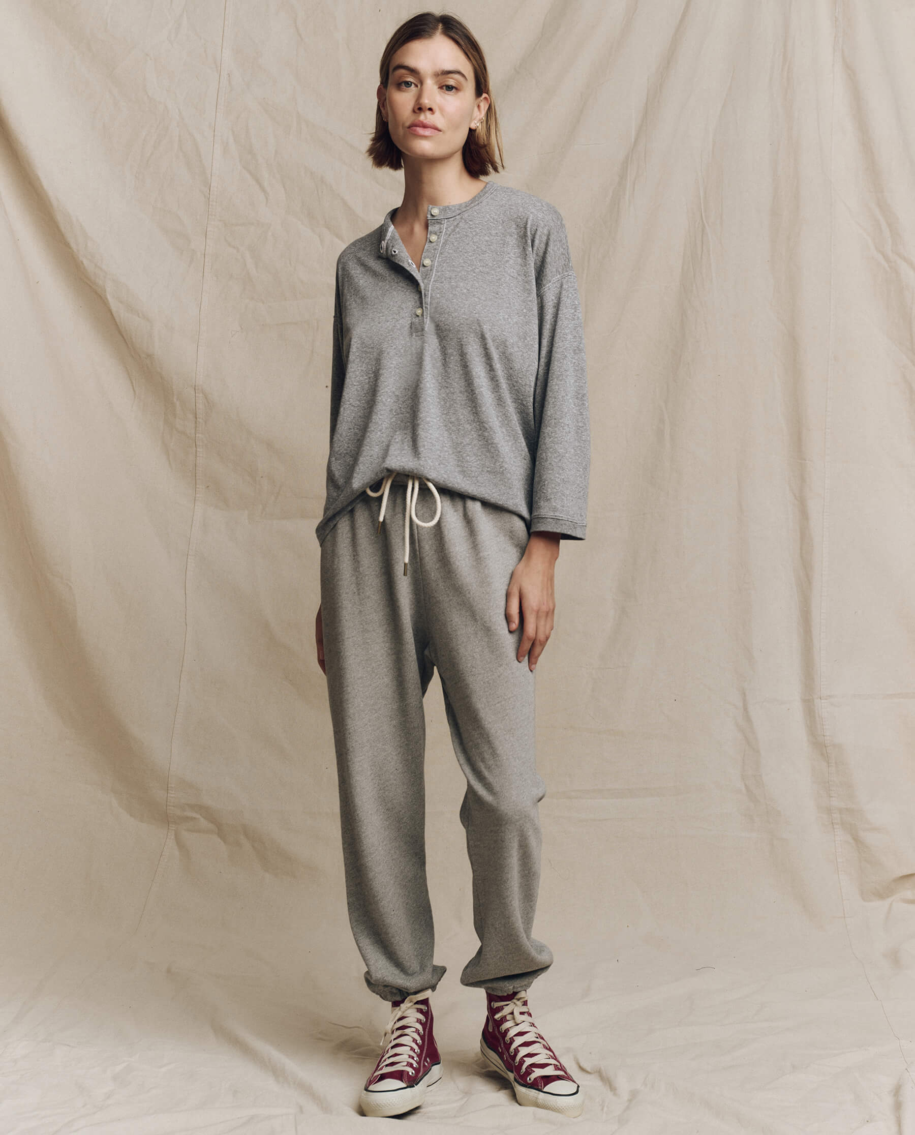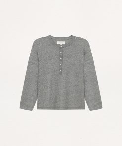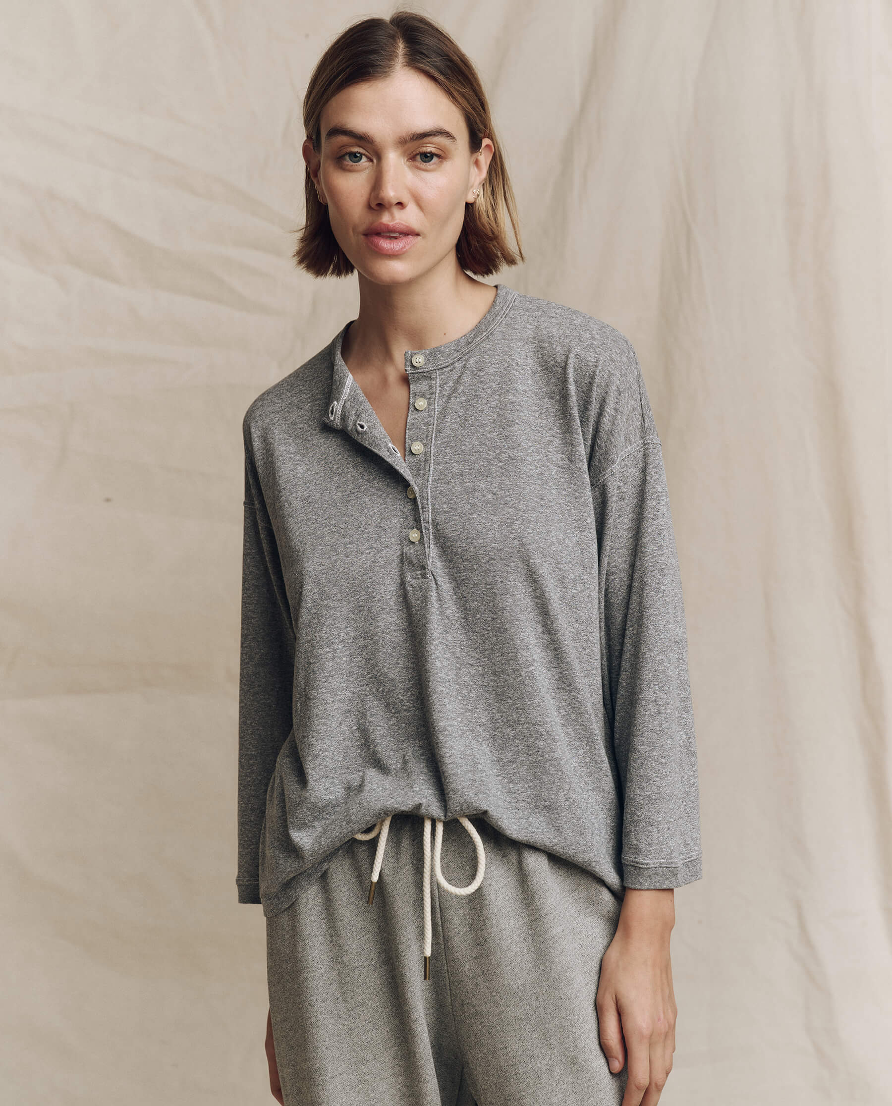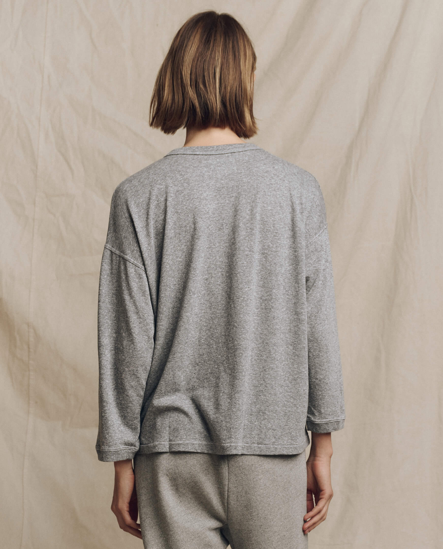 Inspired by a boxy boyish henley, we tinkered with the proportions of this beloved style for a more flattering fit. This classic shape features a crew neckline with a deep button placket, classic shirting buttons, a dropped shoulder, and a sleeve length that hits just above the wrist. Handcrafted locally in Los Angeles, our process ensures beauty and uniqueness—no two pieces are alike.