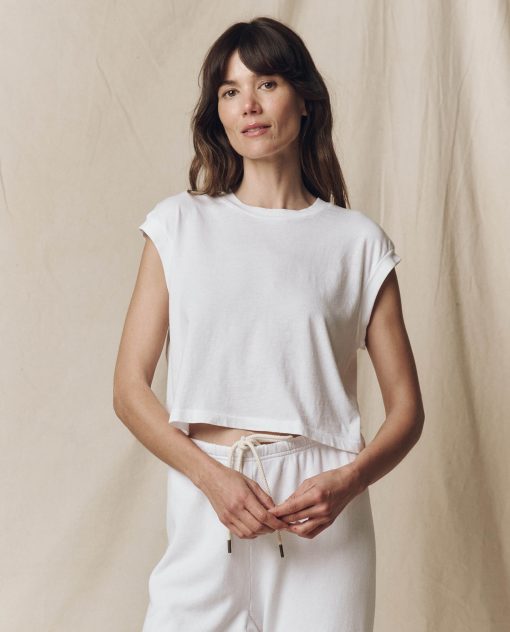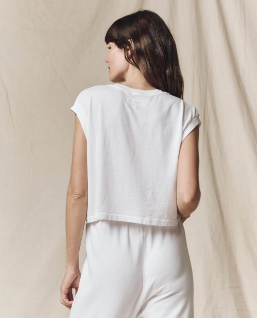 The Square Tee. is inspired by a vintage athletic tee we found while searching through bins at the flea market. It fits boxy through the body, has a square shape, and slightly cropped body length making it the perfect length to wear with high-waisted denim or trousers. Finishing touches include a crew neckline, clean hem, and soft rib at the neckline and armhole. Handcrafted locally in L.A., our process ensures beauty and uniqueness—no two pieces are alike.