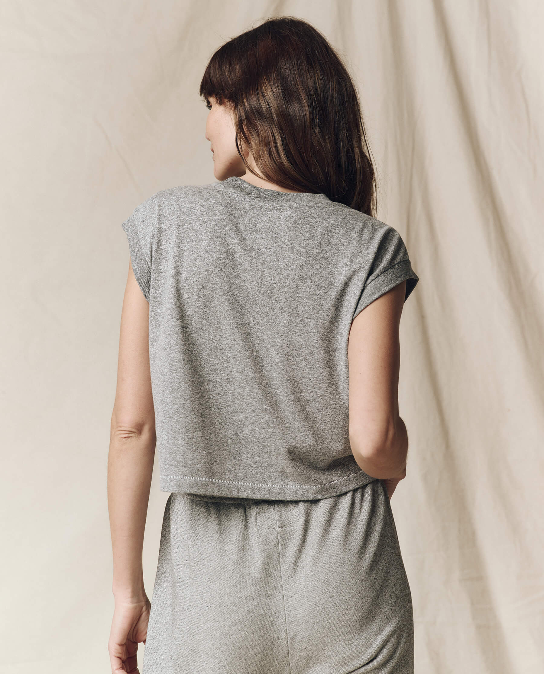 The Square Tee. is inspired by a vintage athletic tee we found while searching through bins at the flea market. It fits boxy through the body, has a square shape, and slightly cropped body length making it the perfect length to wear with high-waisted denim or trousers. Finishing touches include a crew neckline, clean hem, and soft rib at the neckline and armhole. Handcrafted locally in L.A., our process ensures beauty and uniqueness—no two pieces are alike.