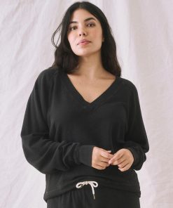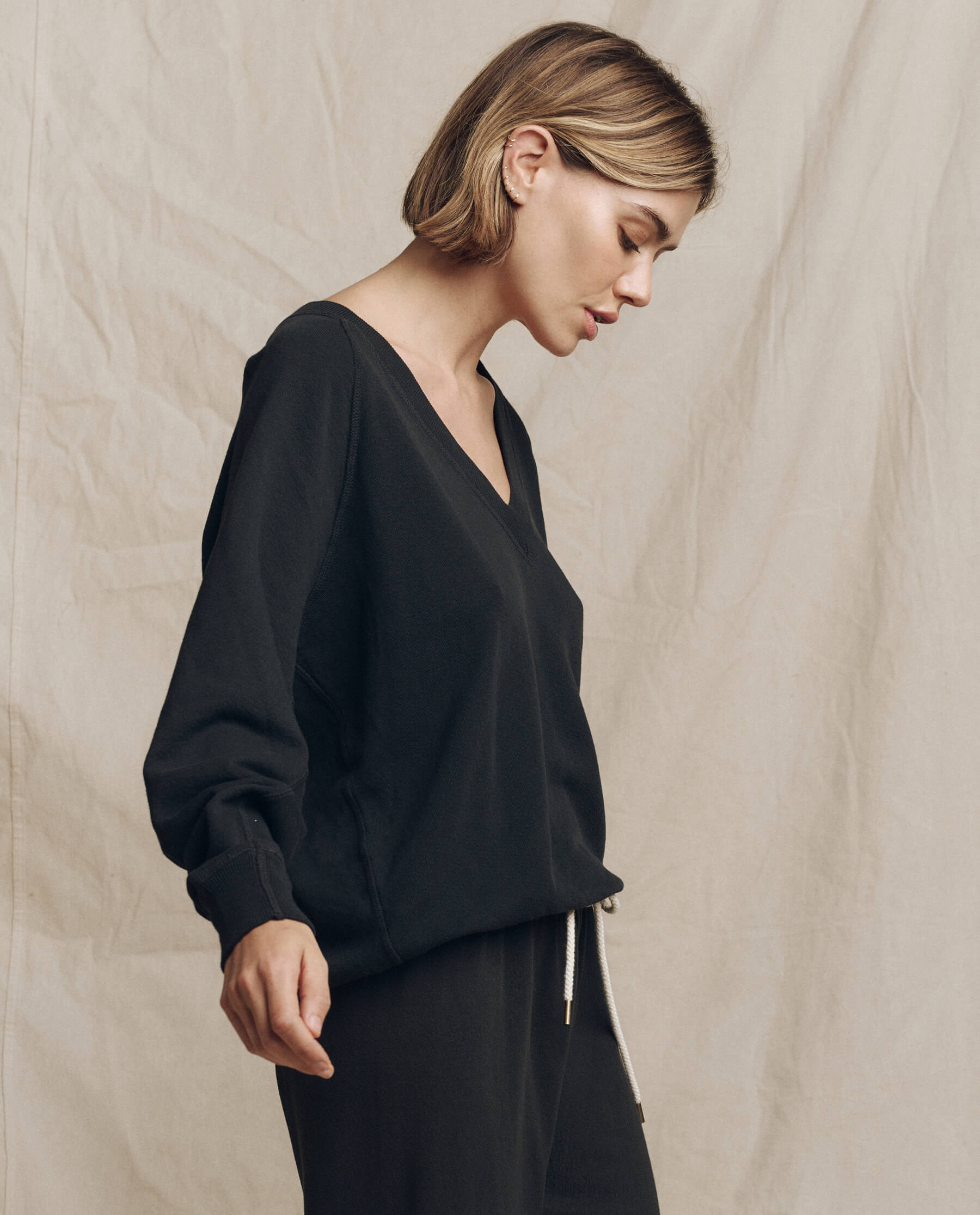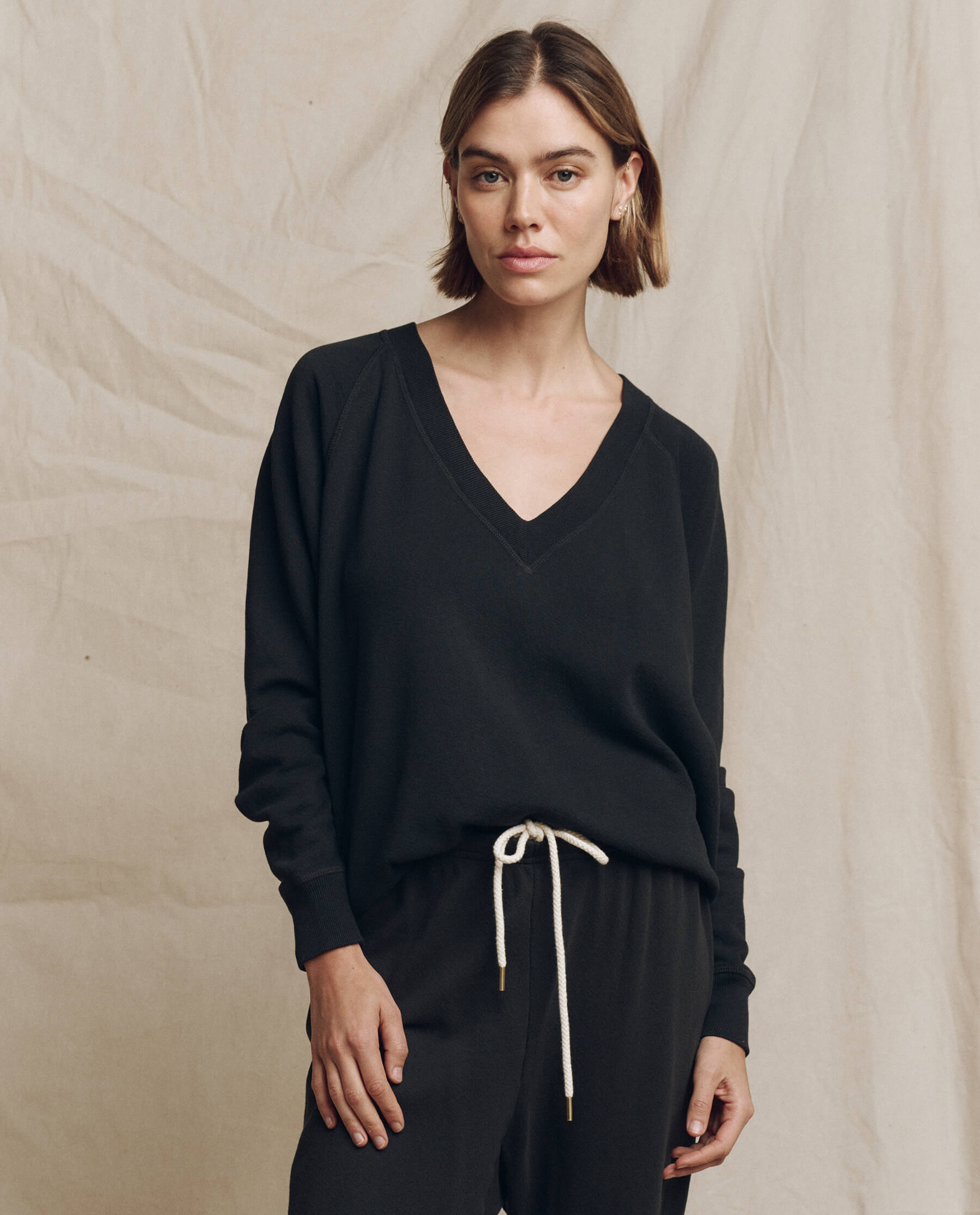 Based on our bestselling sweatshirt, The College Sweatshirt., The V-Neck Sweatshirt. features a deep V-neck opening framed with wide binding. Made from a double washed terry, this relaxed sweatshirt has a lived-in vintage wash and raglan sleeve. All our knits are crafted here in Los Angeles, ensuring authenticity, beauty and uniqueness in that no two pieces are alike.