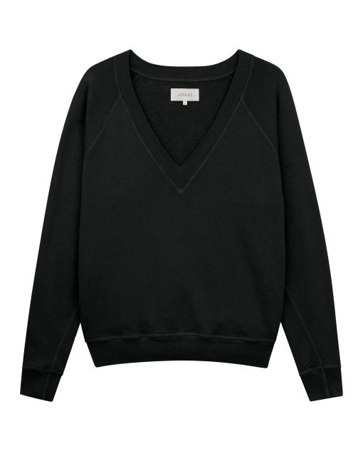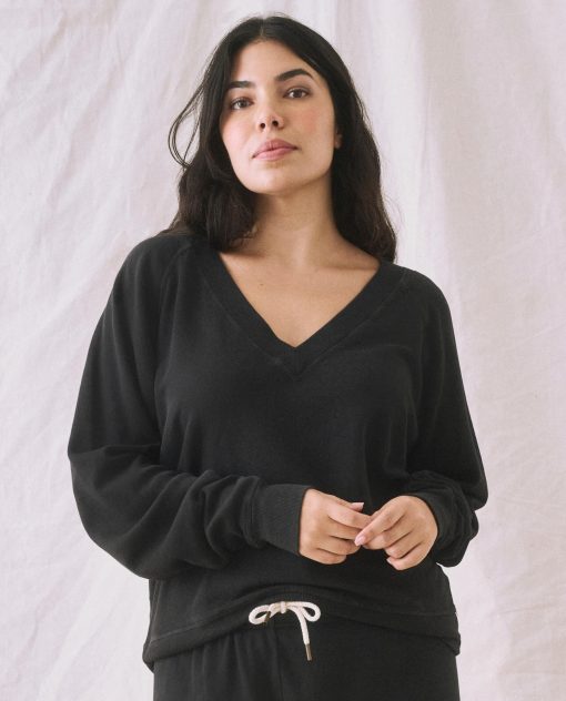 Based on our bestselling sweatshirt, The College Sweatshirt., The V-Neck Sweatshirt. features a deep V-neck opening framed with wide binding. Made from a double washed terry, this relaxed sweatshirt has a lived-in vintage wash and raglan sleeve. All our knits are crafted here in Los Angeles, ensuring authenticity, beauty and uniqueness in that no two pieces are alike.