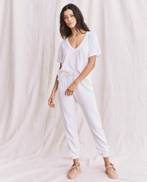 We merged our favorite design details to build the perfect tee. The V Neck. is inspired by our favorite V neck vintage tees that we have collected to make this feel slouchy yet charming with the best boxy fit, not-too-long length, deep plunging neckline, and the most flattering pitched sleeve shape. Handcrafted locally in Los Angeles, our process ensures beauty and uniqueness—no two pieces are alike.