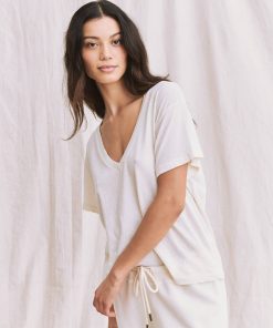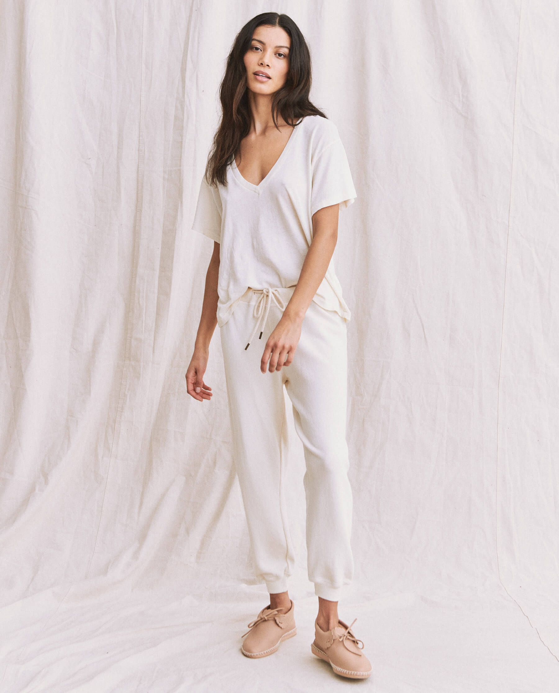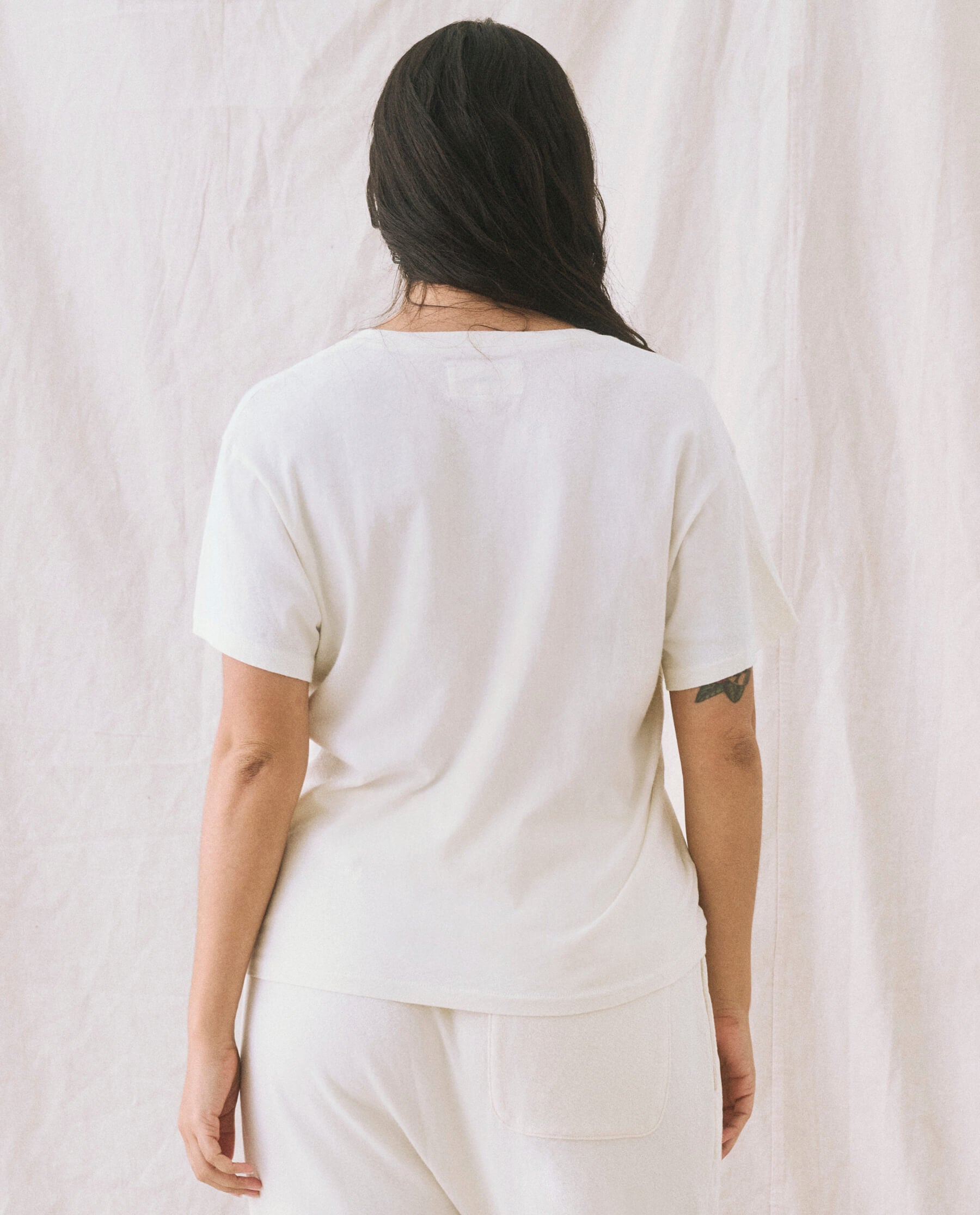 We merged our favorite design details to build the perfect tee. The V Neck. is inspired by our favorite V neck vintage tees that we have collected to make this feel slouchy yet charming with the best boxy fit, not-too-long length, deep plunging neckline, and the most flattering pitched sleeve shape. Handcrafted locally in Los Angeles, our process ensures beauty and uniqueness—no two pieces are alike.