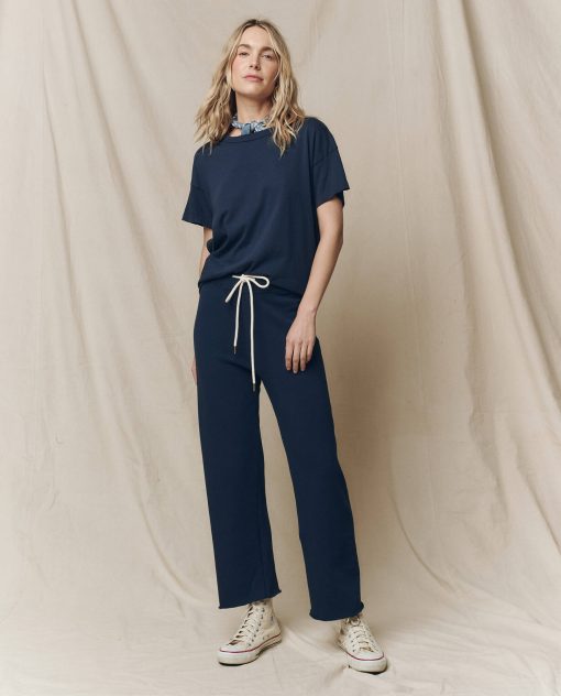 This sweatpant has the most perfect wide, cropped leg- featuring a raw cut hem for a naturally slouchy and easy fit. The drawstring waist replaces traditional elastic for a more customizable look. Made from a washed cotton terry with a vintage feel and the softest hand. Pair back to your favorite tees and sweatshirts. Handcrafted locally in Los Angeles, our process ensures beauty and uniqueness—no two pieces are alike.