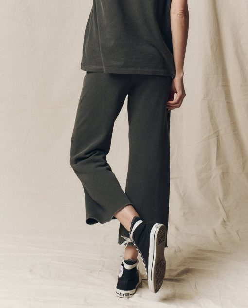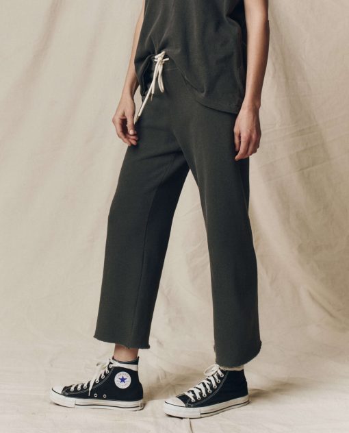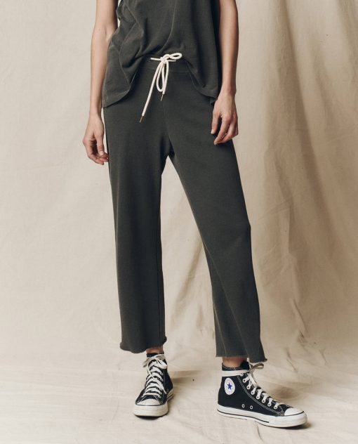 This sweatpant has the most perfect wide, cropped leg- featuring a raw cut hem for a naturally slouchy and easy fit. The drawstring waist replaces traditional elastic for a more customizable look. Made from a washed cotton terry with a vintage feel and the softest hand. Pair back to your favorite tees and sweatshirts. Handcrafted locally in Los Angeles, our process ensures beauty and uniqueness—no two pieces are alike.