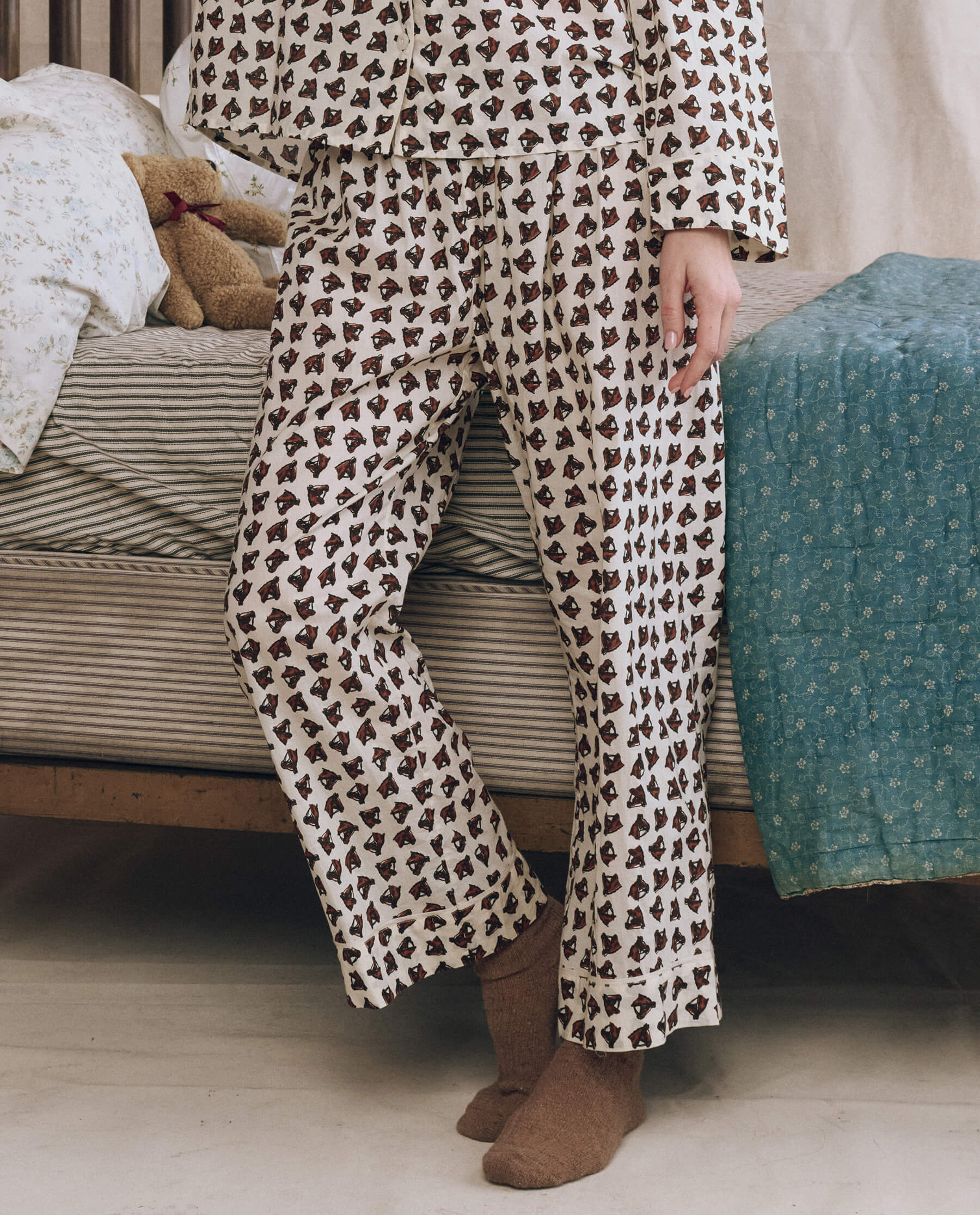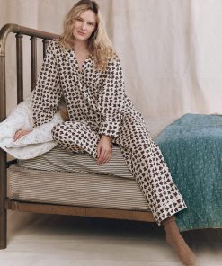 This sleep pant is crafted from the softest 100% cotton in the Medallion Print. It features a wide leg, slightly dropped rise, an elastic high waist and piped cuff. Wear them with its matching sleep top for mornings at home.