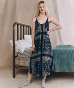 Elegance, without the effort. The Slip Sleep Dress. is cut from the softest 100% cotton in the Bandana Patchwork Print, in a flattering flowy silhouette that hits above the ankle. Complete with a plunging front and back scooped neck line and delicate shirring for added movement and swing you will want to take from day to night.