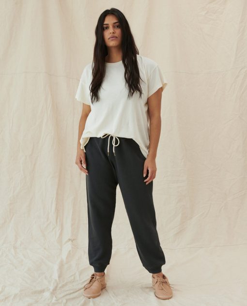 This worn-in sweatpant is the perfected version of a vintage gym pant. Its drawstring waistband and ribbed cuffs make for a perfectly relaxed look. Our knits are crafted here in Los Angeles, ensuring authenticity, beauty and uniqueness in that no two pieces are alike.